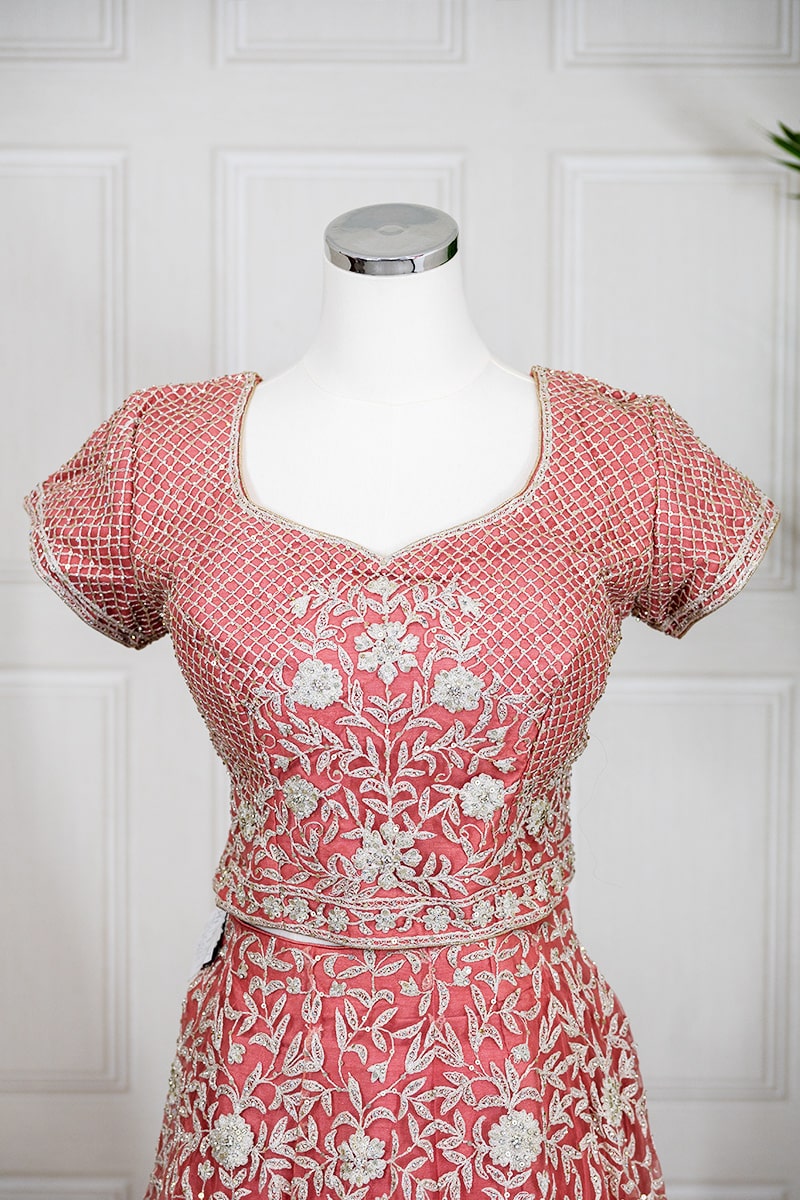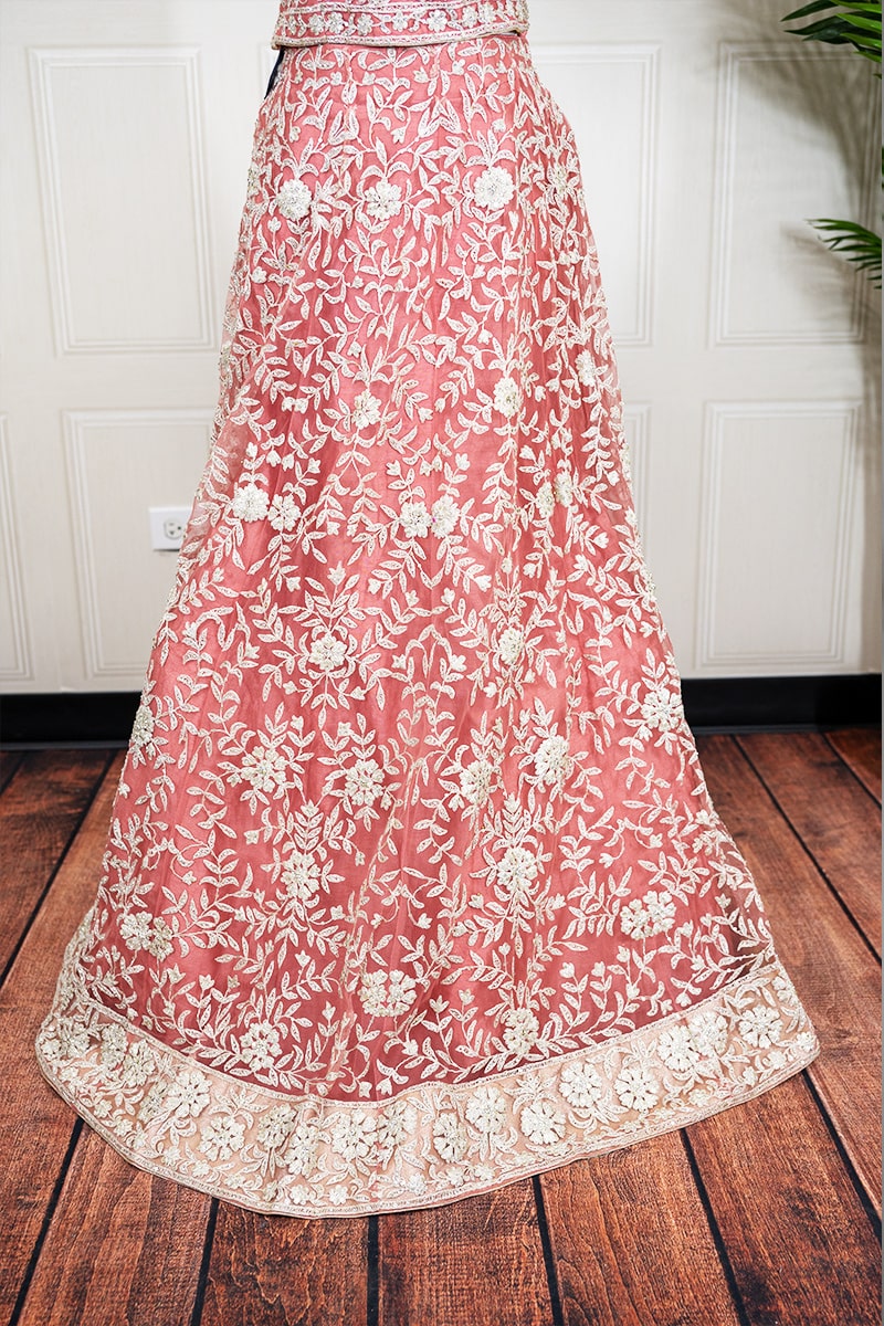 This exquisite Sahil Cloths Women’s Lehenga Choli in a beautiful coral hue features a 3-piece set with intricate zari and stone work. The soft net fabric used for the lehenga, blouse, and dupatta ensures a comfortable and luxurious feel.