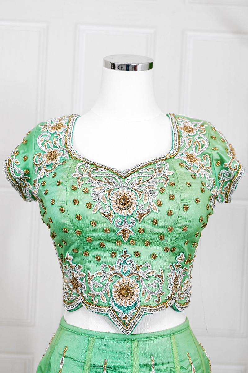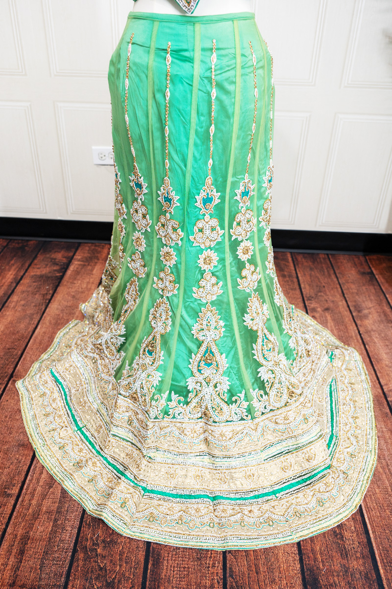 With a bust measurement of 33 inches, top length of 16 inches, waist size of 30 inches for the blouse, and a skirt waist of 30 inches with a length of 42 inches, this lehenga choli offers a beautiful and flattering fit. Perfect for weddings and special events, this ensemble combines intricate craftsmanship with modern grace, making it a must-have for any celebration.