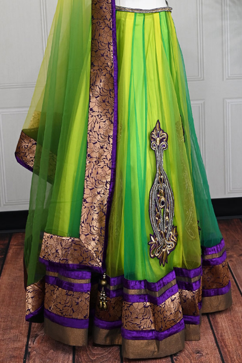 Neon Green and Lime Yellow Lehenga with Purple Blouse